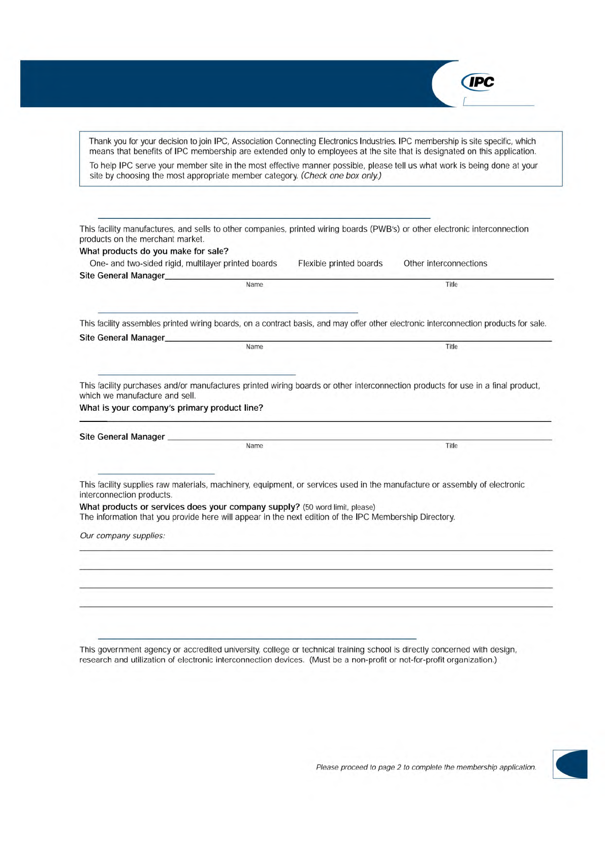 Application for IPC Site Membership