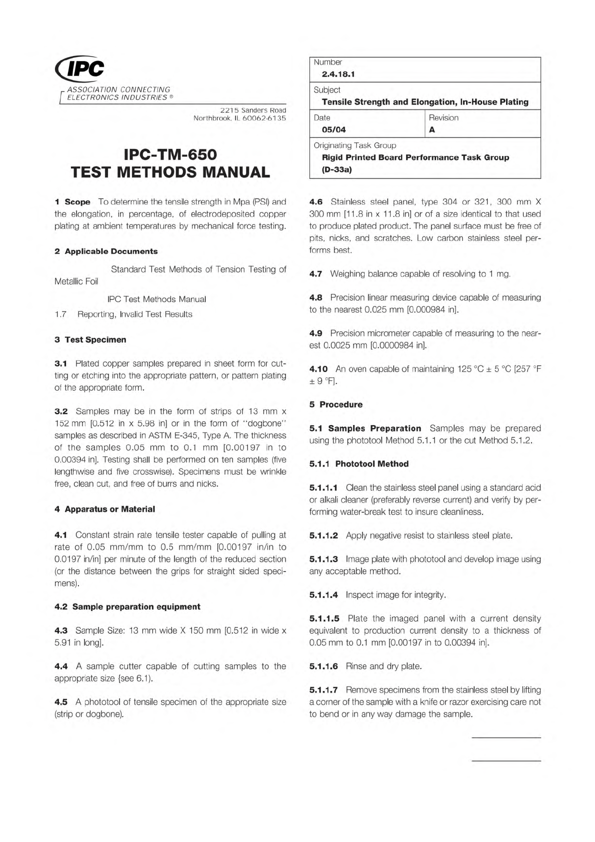 Material in this Test Methods Manual was voluntarily established by Technical Committees of the IPC. This material is advisory only