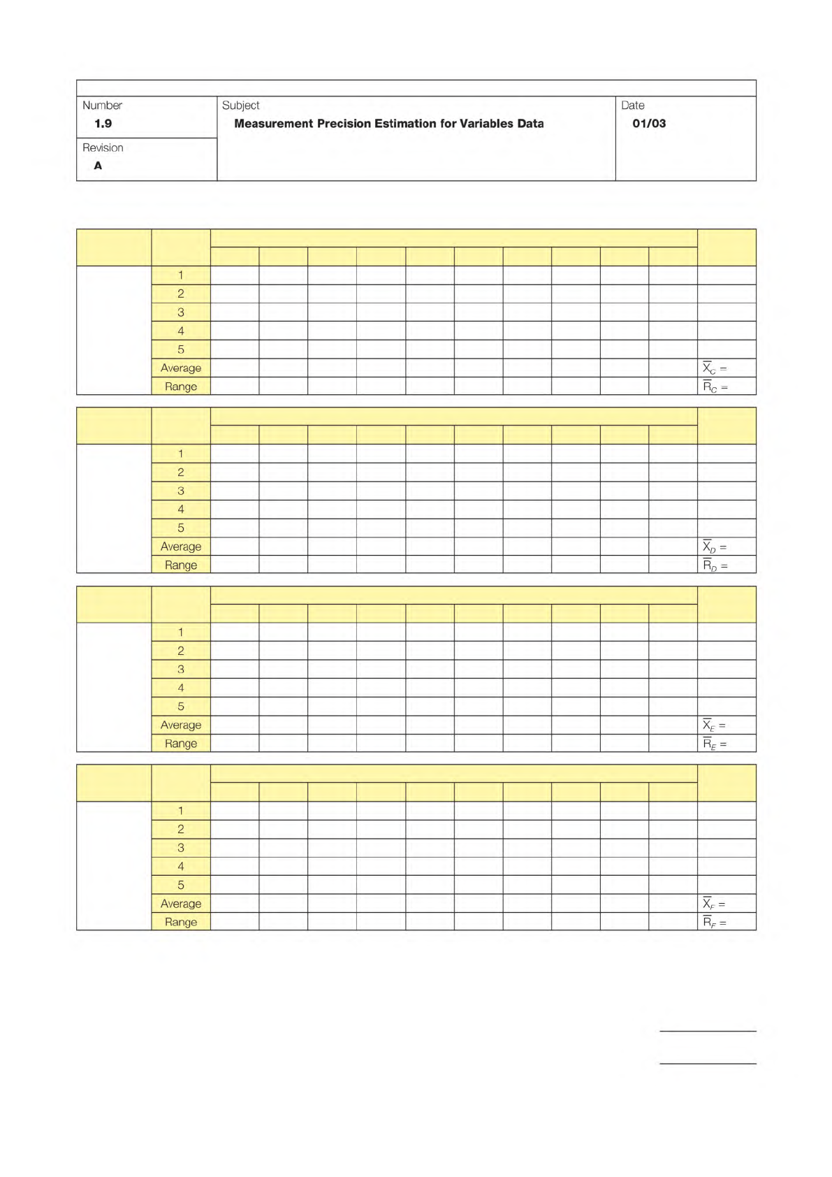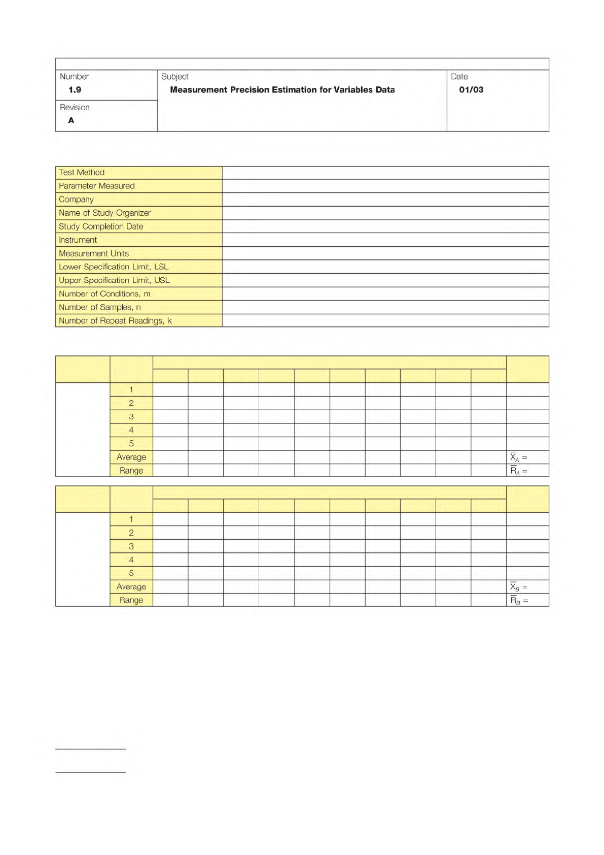 Measurement Precision Study - Data Sheet Condition A Reading Sample A verage 1 2 3 4 5 6 7 8 9 10 Condition B Reading Sample A verage 1 2 3 4 5 6 7 8 9 10 Measurement Precision Study - In formation Sheet IPC-TM-650 Page …