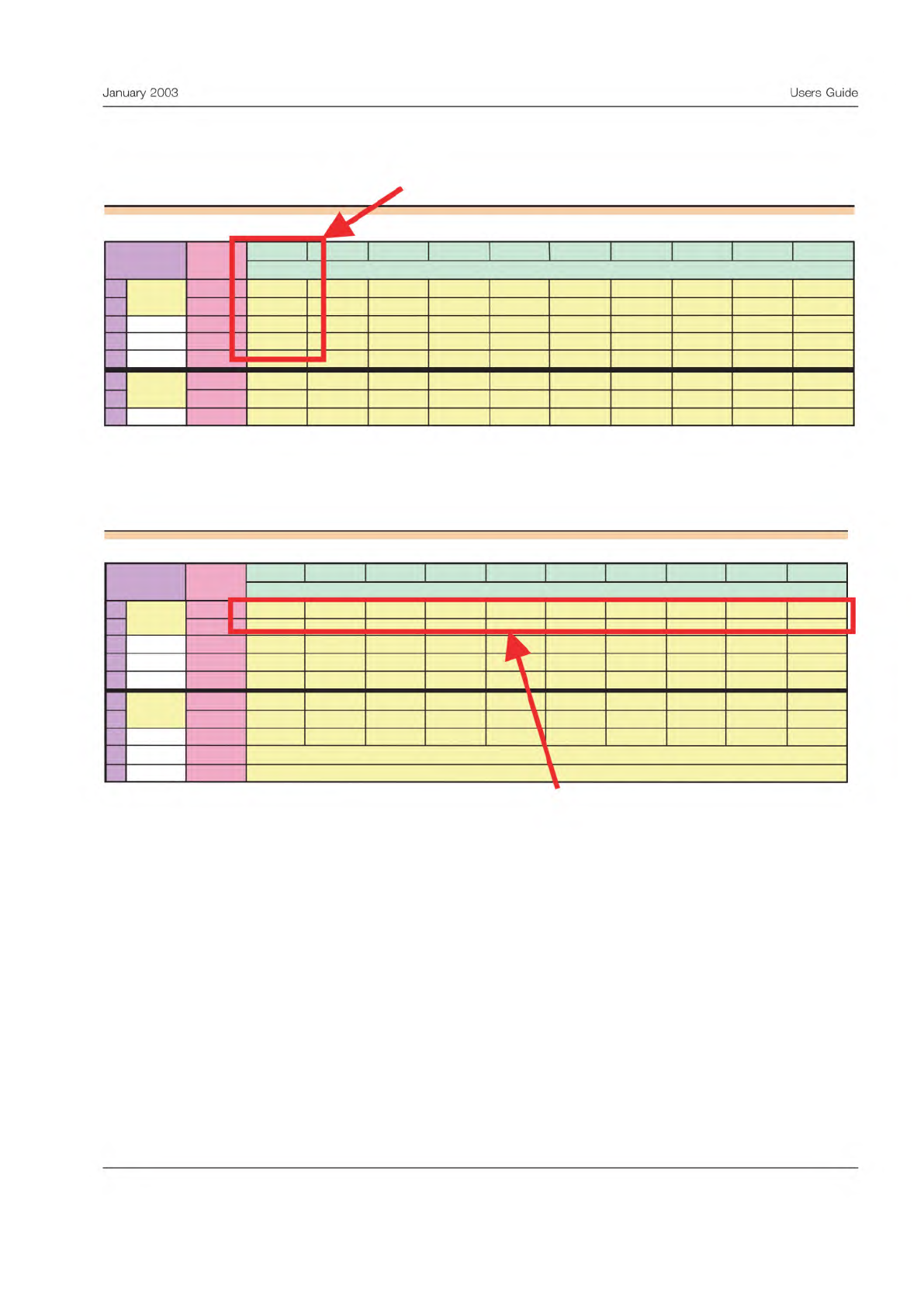 coding scheme to keep track of the headings in the table. Headings pertaining to test conditions appear in purple. Headings