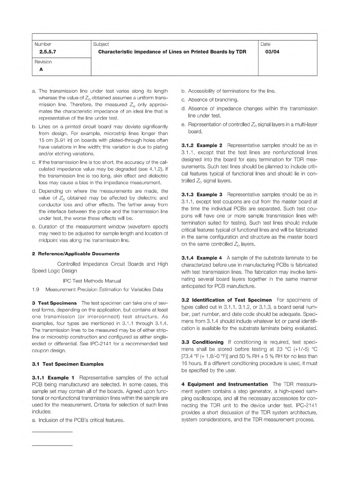 Figure 4-1 Resolution and Electrical Length of T ransmission Line t V adequate resolution t V inadequate resolution 2 T p transmission line IPC-TM-650 Page 3 of 23 Number 2.5.5.7 Subject Characteristic Impedance of Lines…