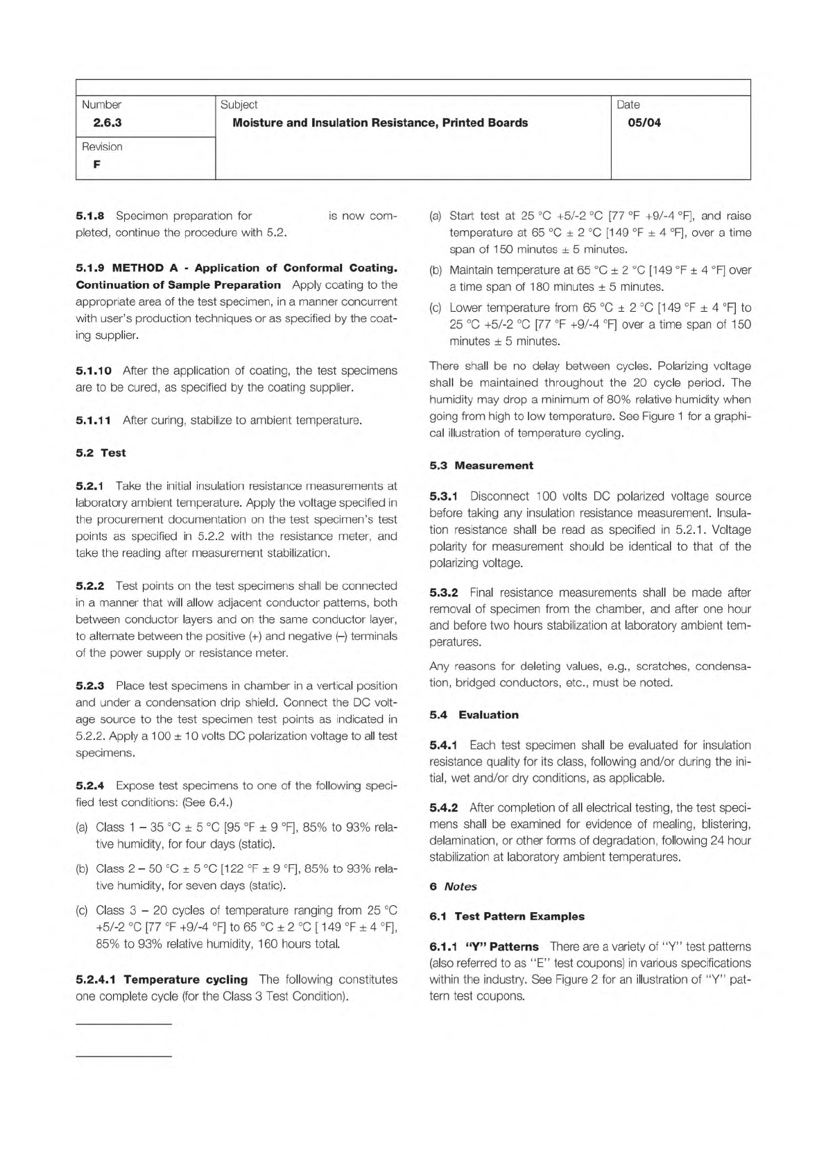 Figure 1 Moisture and Insulation Resistance T est Graph Figure 2 Insulation Resis tanc e Coupon E (See T able 7-3), mm [in] IPC-TM-650 Page 3 of 4 Number 2.6.3 Subject Moisture and Insulation Resistance, Printed Boards D…
