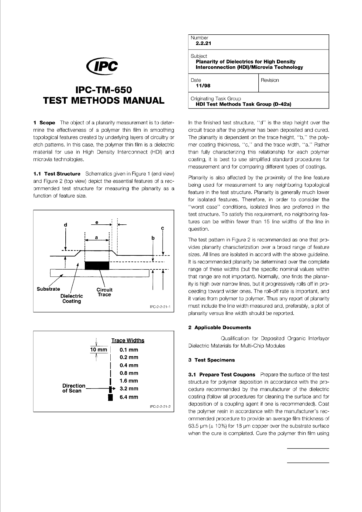 IPC-D D-135 Figure 1 Cross-Section Planar ization Diagram Figure 2 T op View of Planarization Structure The Institute for Int erconnecting and Packaging E lectronic Circuits 2215 Sanders Road • Northbrook, IL 60062 Mater…
