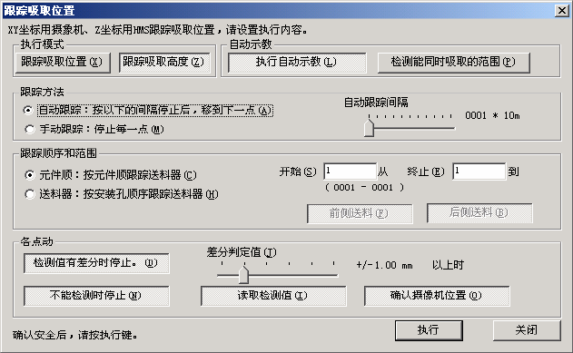 以一定的间隔,依次使用摄像机捕获贴片位置。在以下的“自动跟踪间隔”中设定的