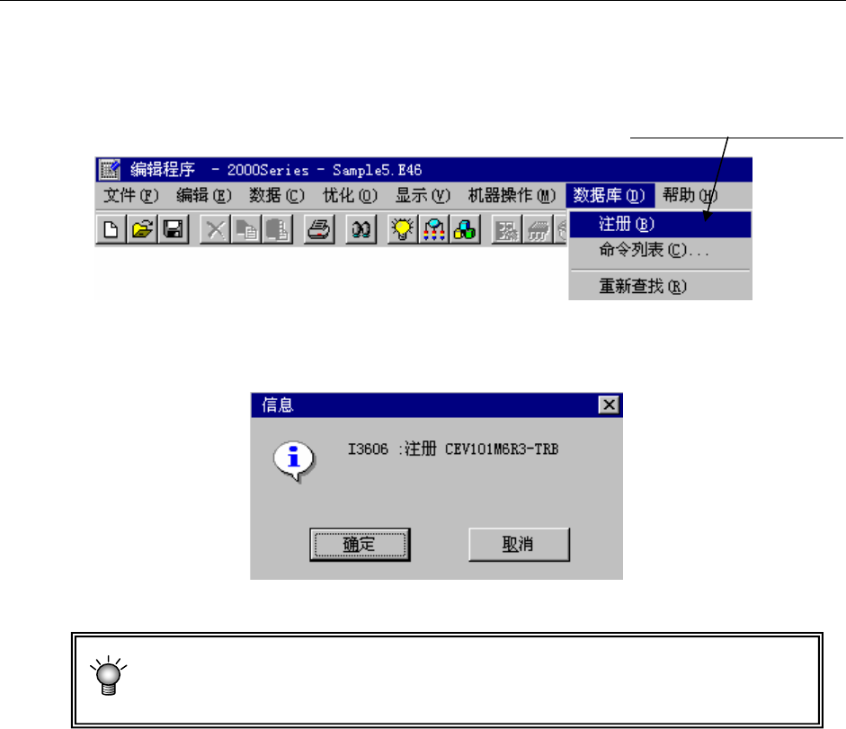 2) 选择要注册的元件(显示一览表画面时,可单击元件所在行)后,单击“数据库”/“注册”。
