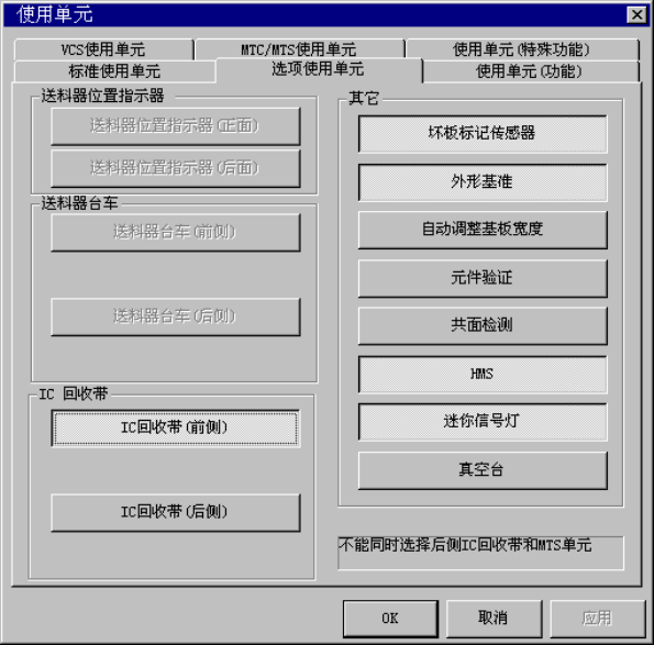 点击标签,指定“标准使用单元”、“选项使用单元”、“使用单元(功能)”、“VCS使用单