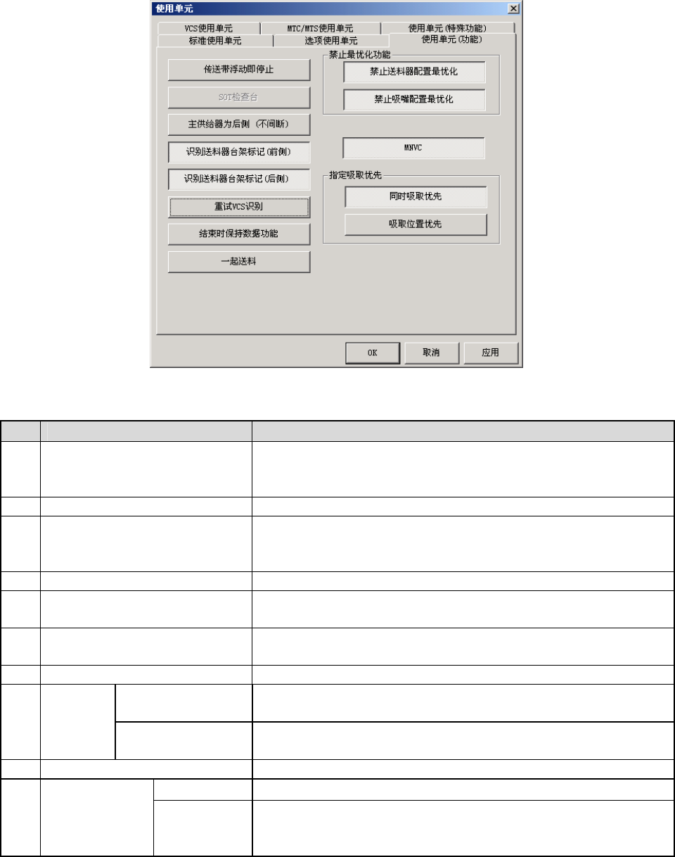 选择“使用单元(功能)”标签,则显示如下图的使用单元(功能)设置画面。