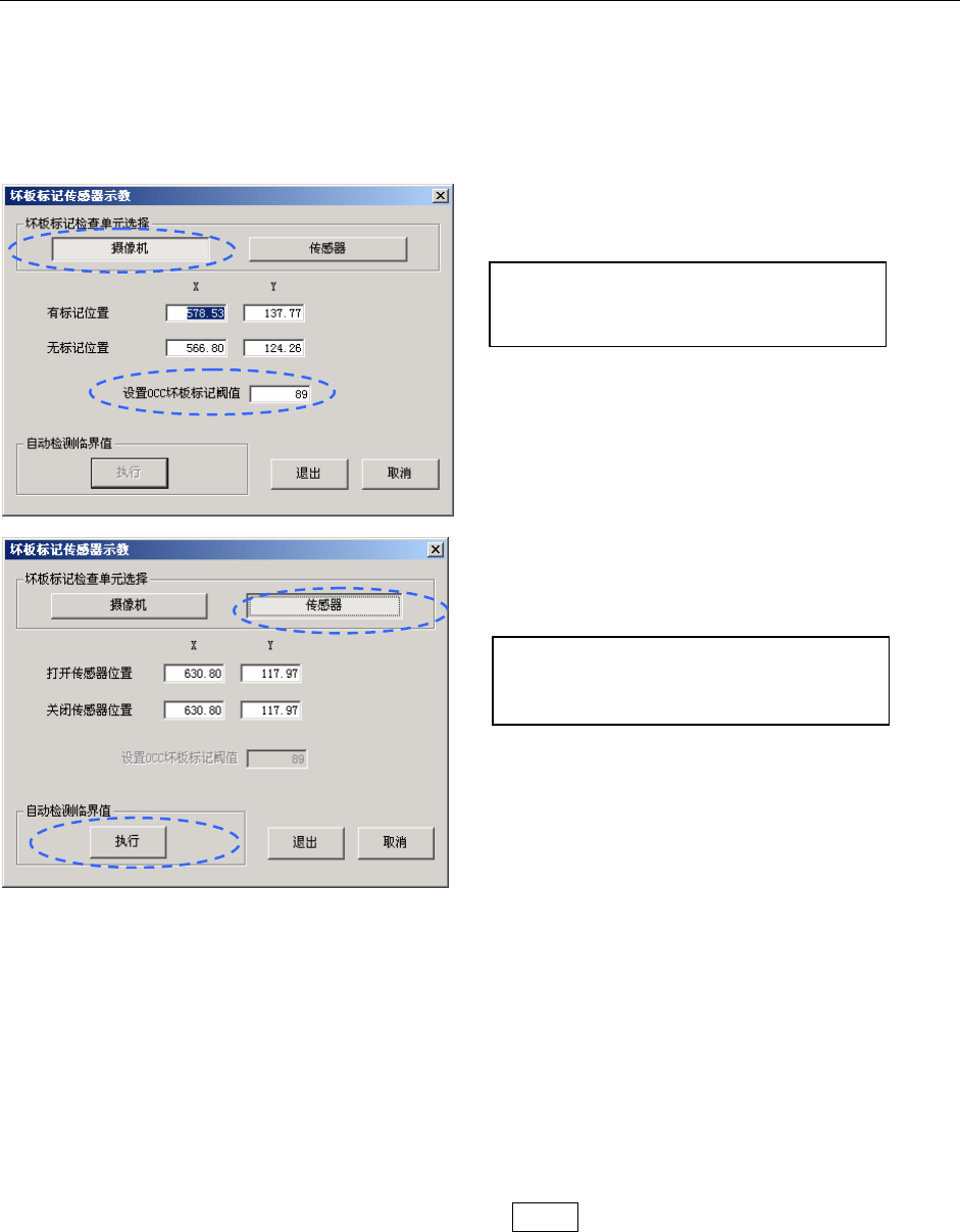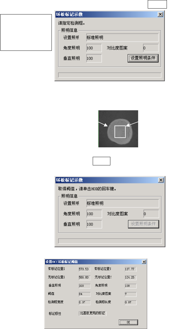 把光标对准设置 OCC 坏板标记阈值的编辑框,按下 HOD 的 CAMERA 键开始示教。