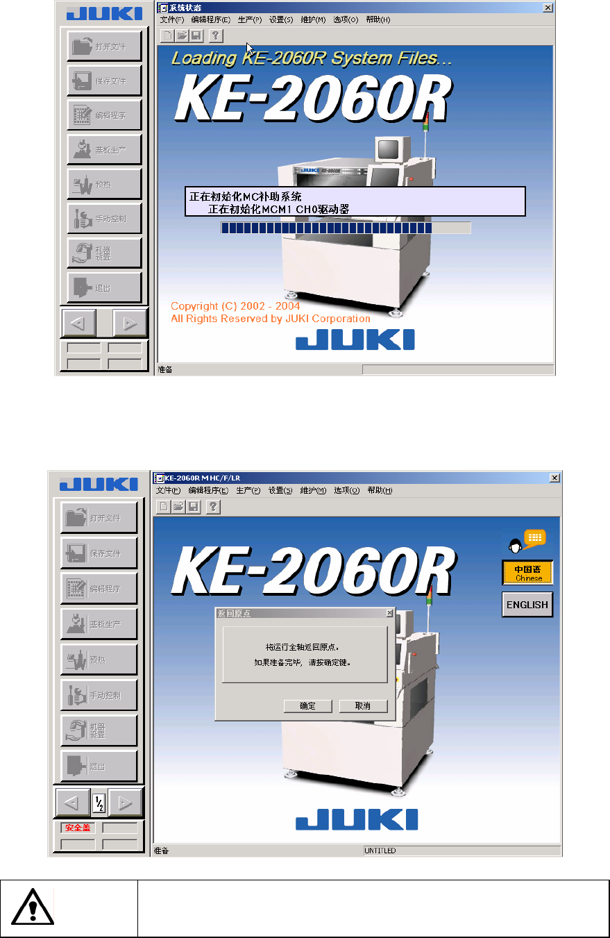 3) 初始设置结束后,显示主画面,在此基础上显示返回原点画面。单击“确定”按钮