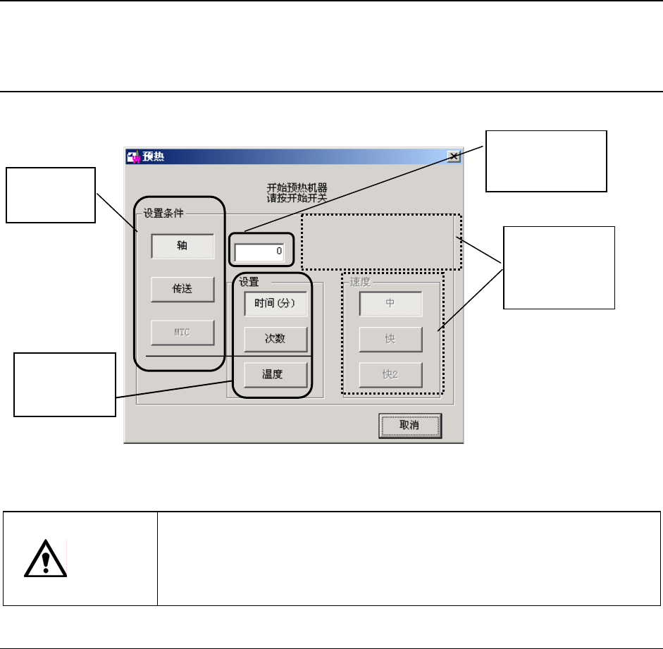 预热对象,从轴、传送、MTC中选一(初始设置为“轴”) 选择一项。