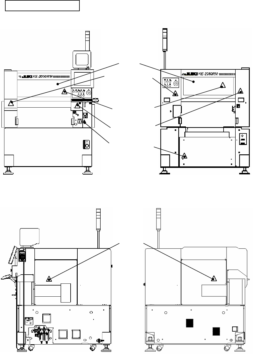 VI 为了安全使用 KE-2050R/2055R/2060R 系列的注意事项 1 : 为了防止触电引起的事故, 请勿在接通电 源的状态下打开电气设 备箱。 2 : 为防止触电,请勿在拆下接地线的状 态下运行。 1 : 为防止人身受伤, 请勿在拆下安全罩、 安全装置等的状态下运行 。 2 : 为防止人身受伤, 请务必小心, 以免头发、 衣服等被卷入传送带 链。此外,请勿戴手套。 3 : 为防止人身受伤, 保养时 (加油、 调试、 日常检修…