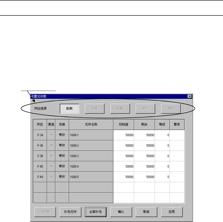 盘信息计算出的元件数量,而送料器则设定为“0”。此时,将不进行送料器元件剩余数量的
