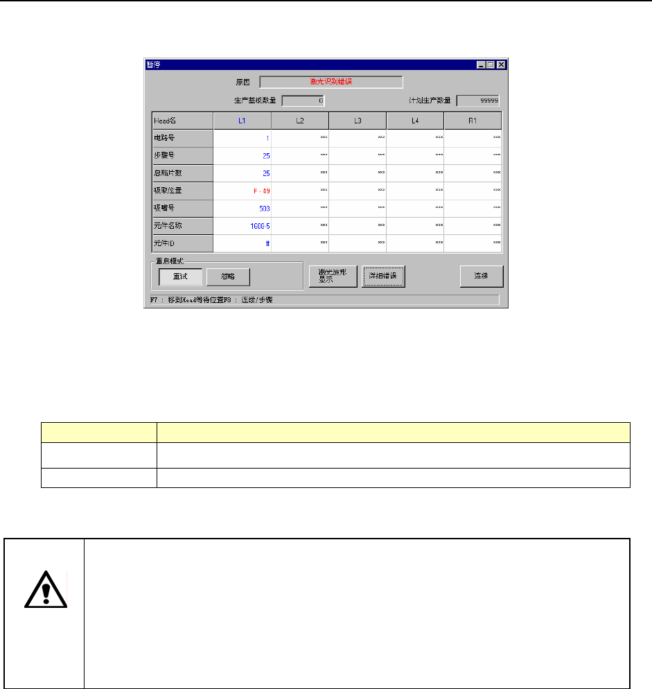 重试 从发生错误的元件的吸取贴片循环起,重新开始生产。