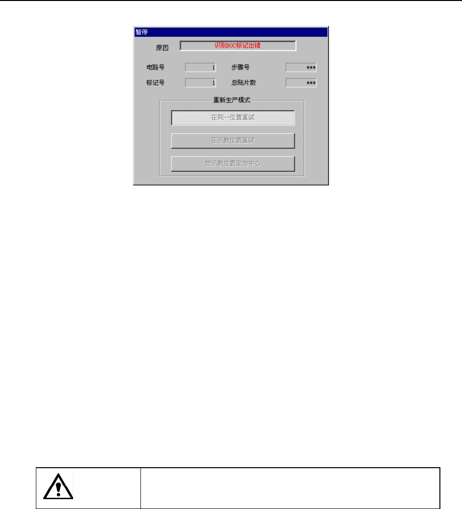 在BOC标记、区域坐标点的识别中发生识别错误,则显示如下的画面,并进入暂停状态。