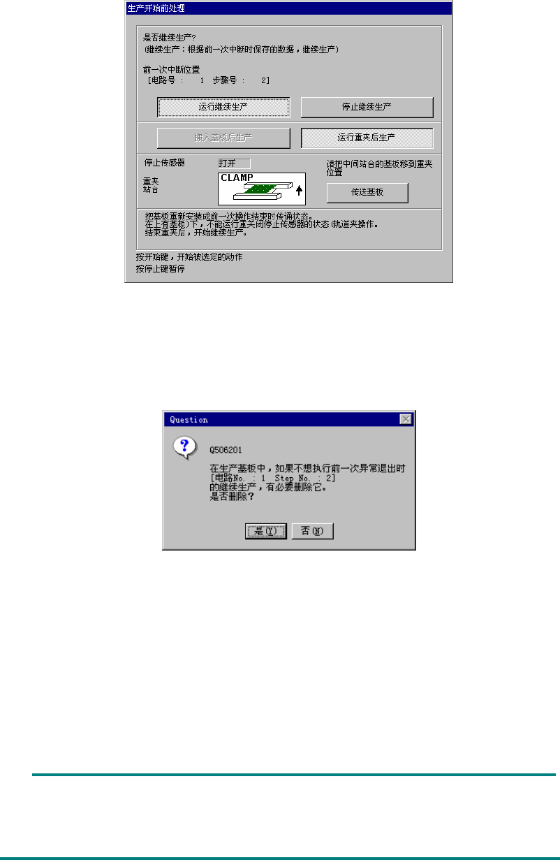 选择“是”,则删除继续生产数据。此时,不能进行上次异常终止时的继续生产。