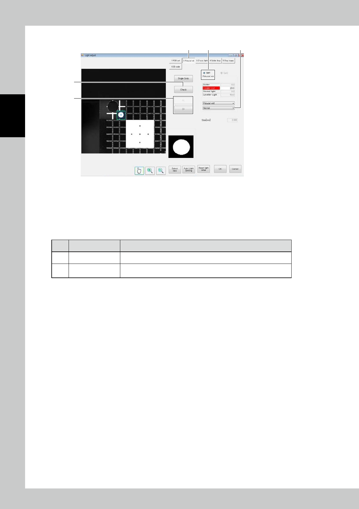 To adjust the light intensity, use the table displayed on the right side of the screen during execution of the inspection