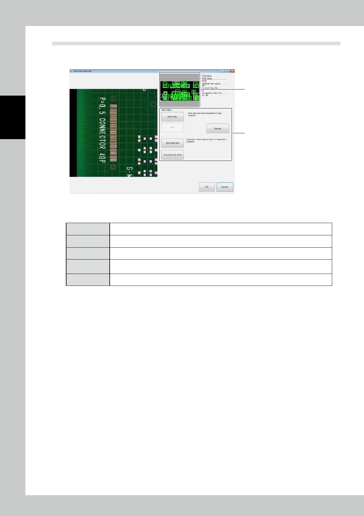 2-86 2 Operation 4.4 Automatic Zero Level Setting T ouc h the PCB data [Auto zero level setting] button on the engineer mode screen. T he screen shown below is displa yed. 2 1 242C0-KMN-00 1. T ouch the frame of the fiel…
