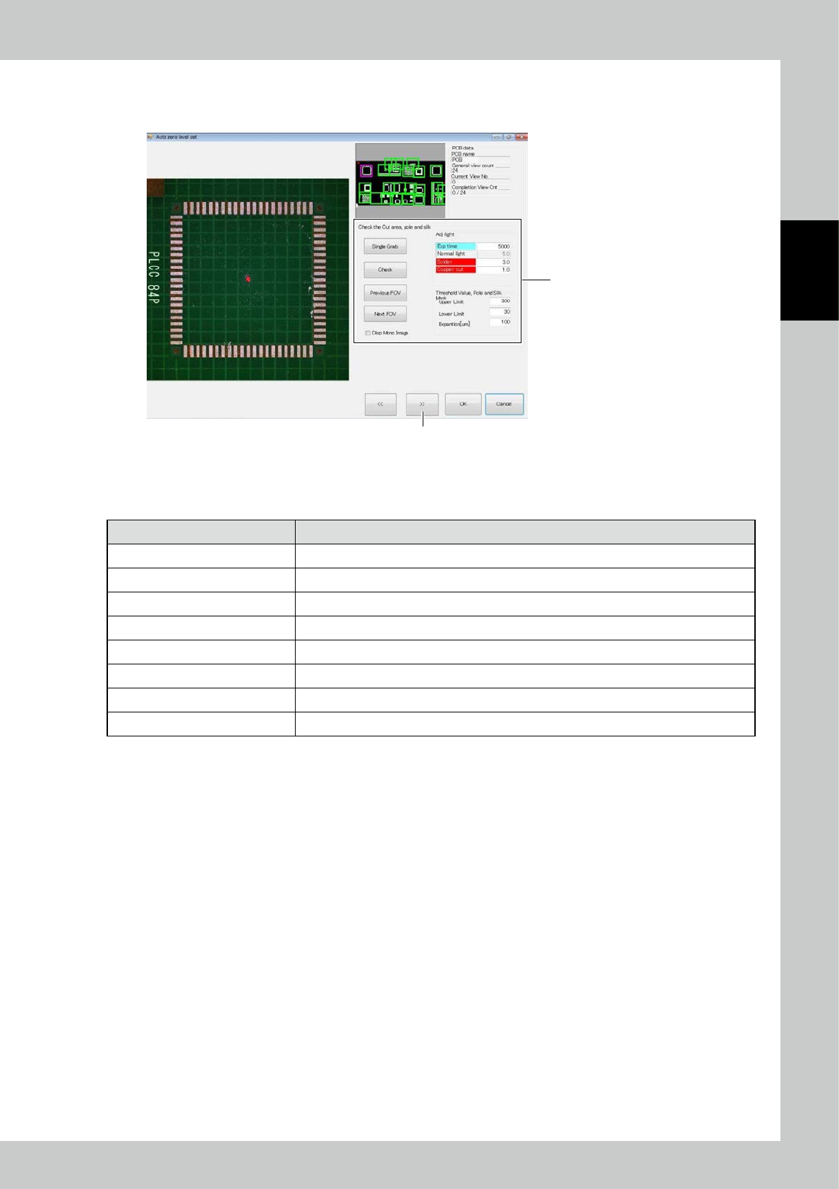 Previous FOV/Next FOV Move the field of view for checking the electrode and silk cut sections.