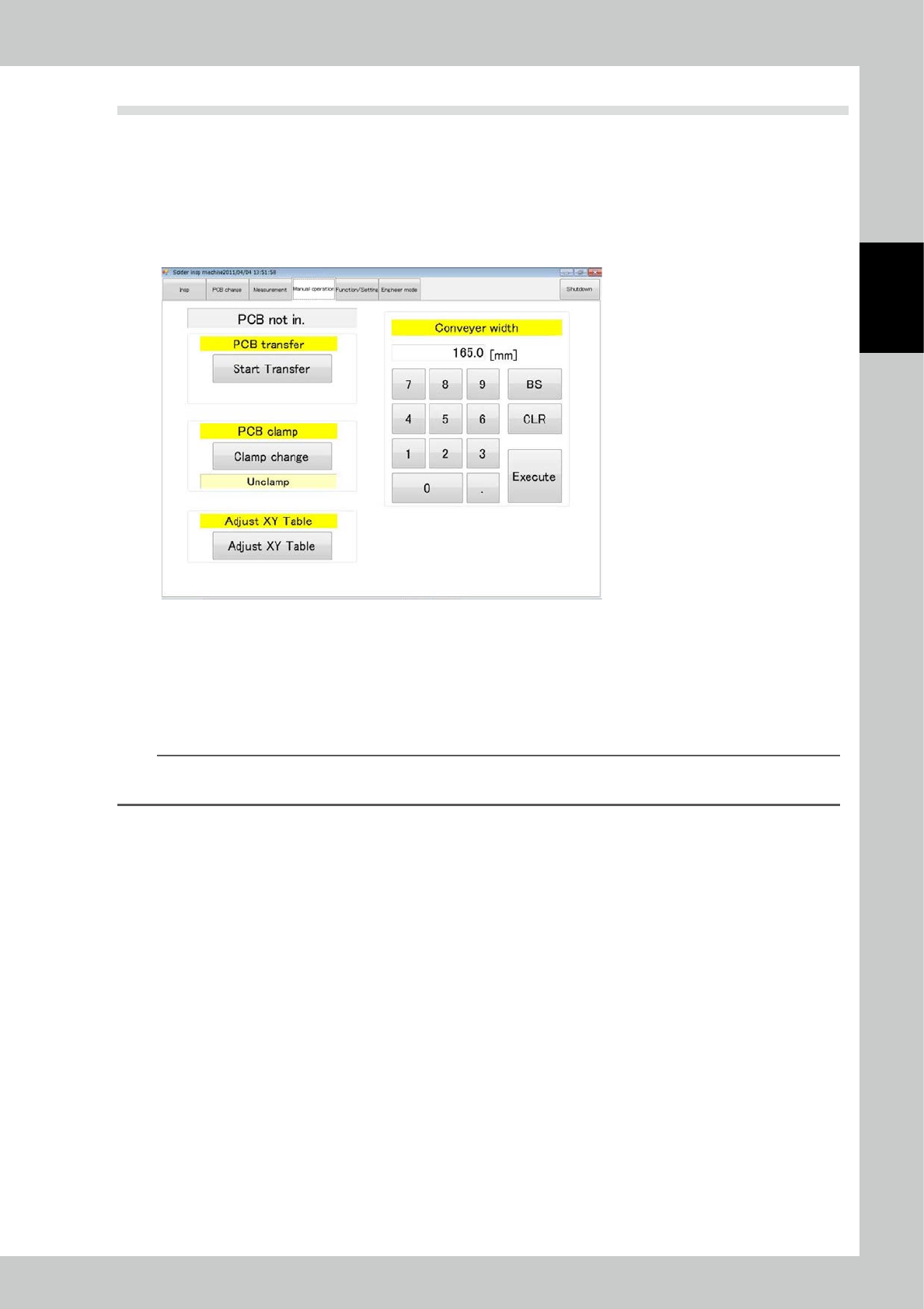 While the PCB is in the machine, touch the [start transfer] button on the manual operation screen (see the