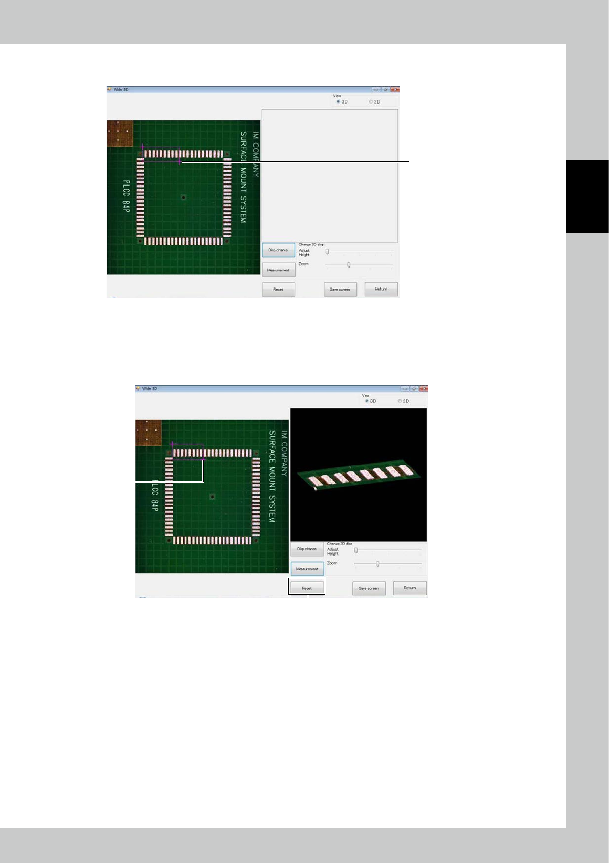 To view the result of inspection of the PCB, touch “Measurement” on the main menu to open the measurement screen.