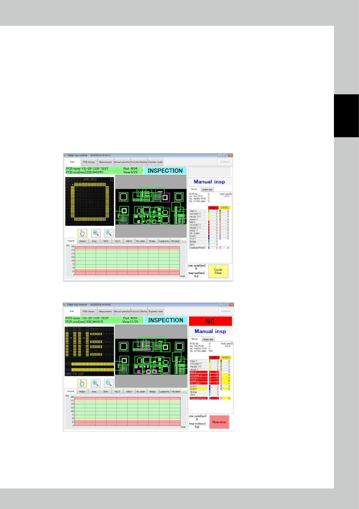 Touch the inspection tab on the main menu to display the inspection screen. Select automatic inspection from the
