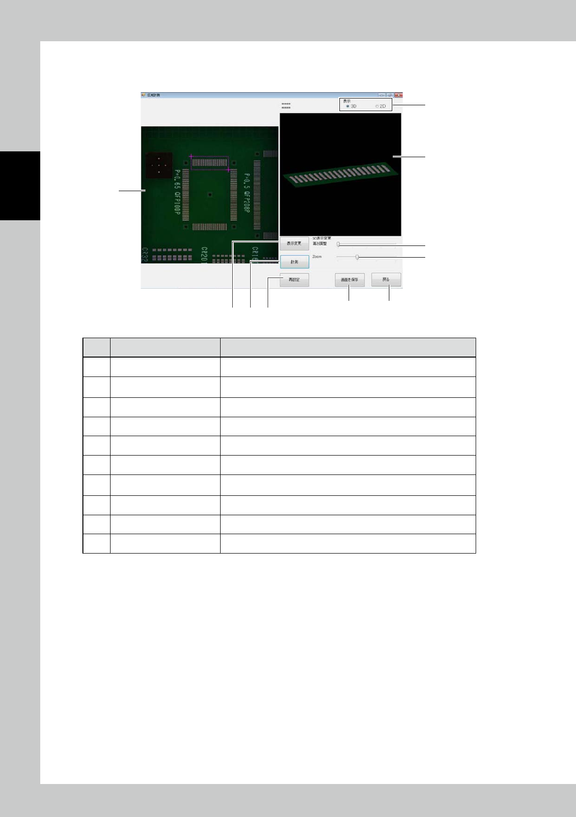 6 [Measurement] button The range selected in the view image is displayed in a 3D image.