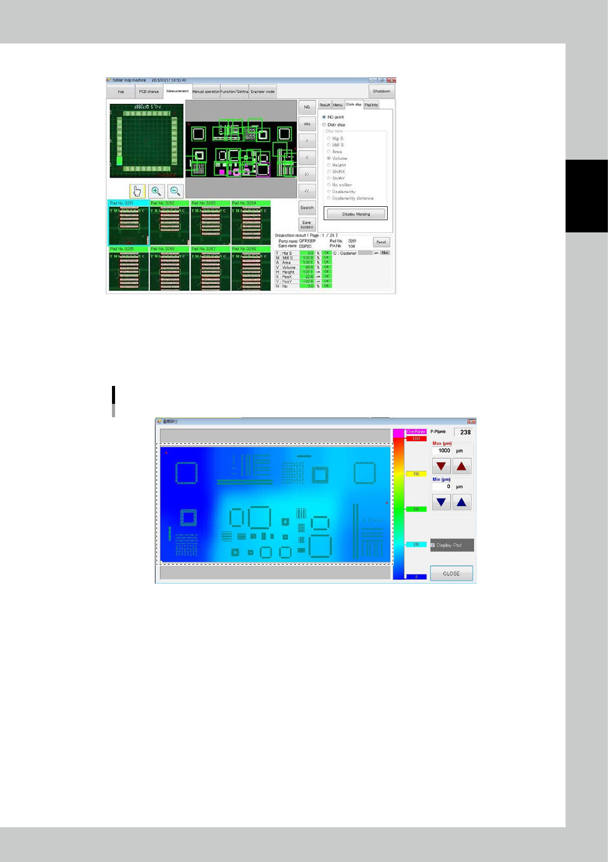 PCB warping distribution display part is occupied almost of the window. It is displayed by Variation of colors according