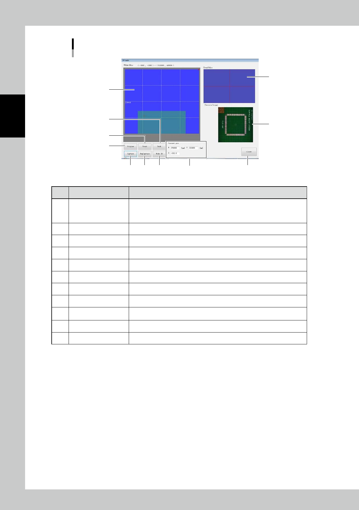 6 [Back] button The XY table travels so that the camera unit is in the farest position.