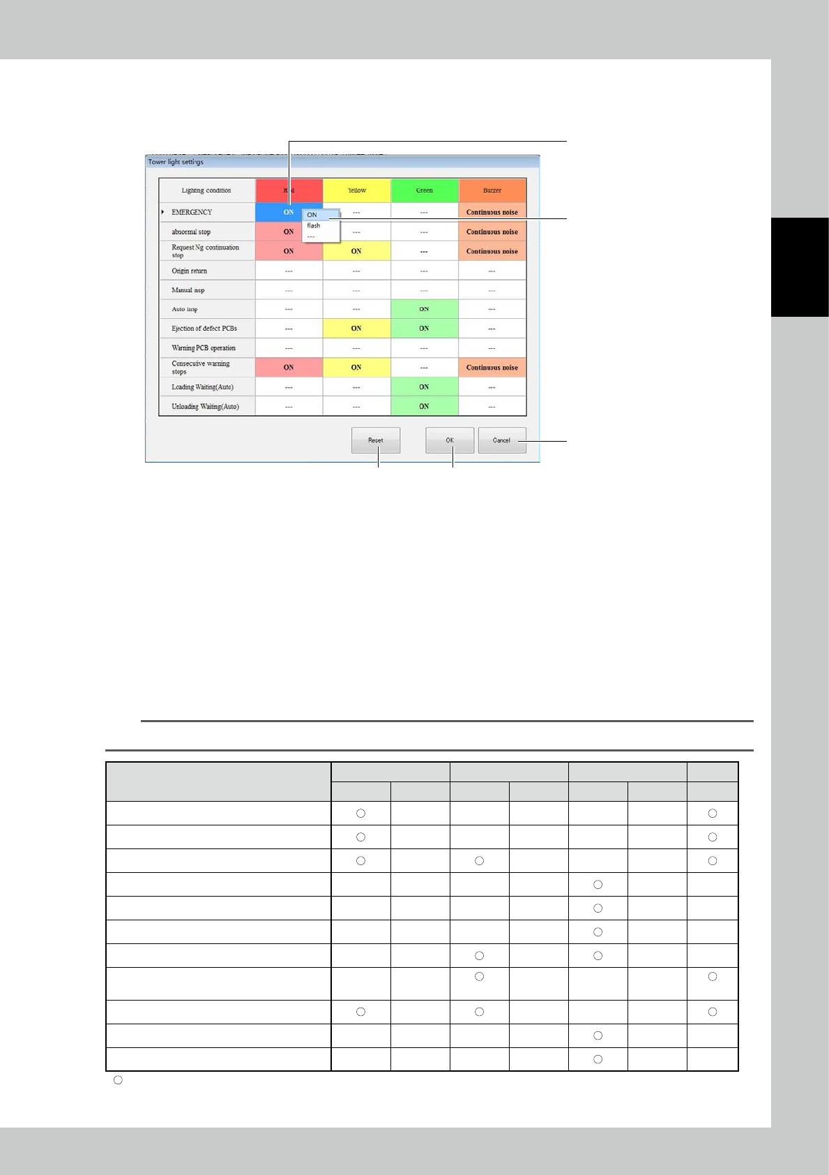 2. Choose a tower light color and condition for the buzzer.