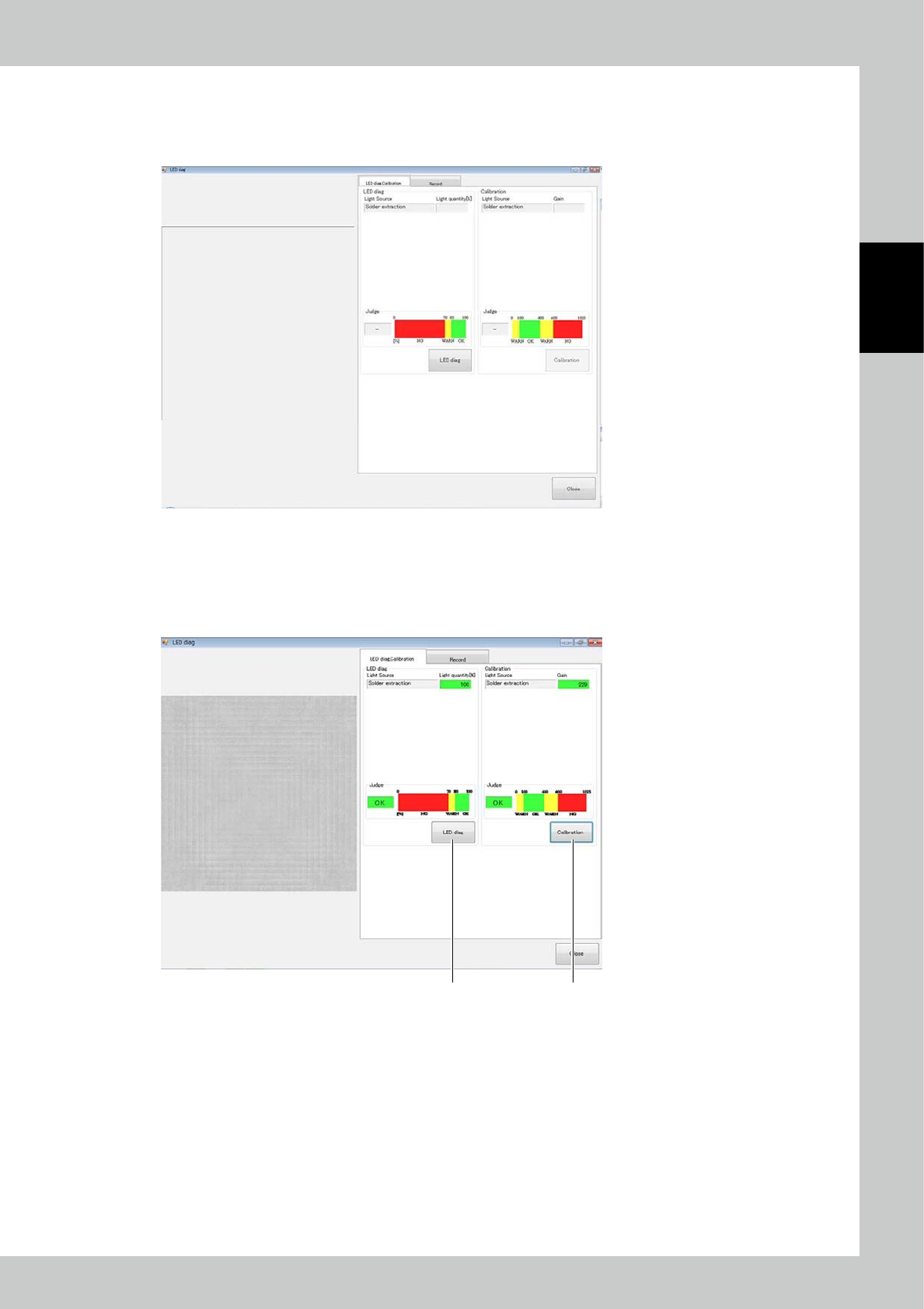 2-57 2 Operation 3.7.2 LED diag (Option) Place a jig for chec king the light source and touch the LED diag button. T he screen shown below is displa yed. During light source diagnosis, y ou can check deterior ation of th…