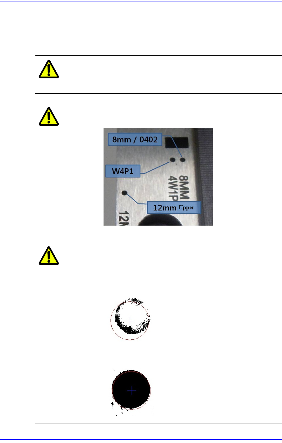 3-6 SME Tape Feeder Calibration Jig User's Manual 注 意 在下列情况下必须重新示教 主供料器的原点。 1) 治具的相机、 镜头或台面接触到其他 对象 ( 物品、 人 ) 相机、 镜 头或台面接触到其它物体时可能会 导致测量主供料 器原点的光学系统条件改变, 这时候必须重 新示教主供料器 的原点。 2) 使用者在使用治具的过 程中脱离治具所在位置后重新回归 时 在使用者脱离治具所…