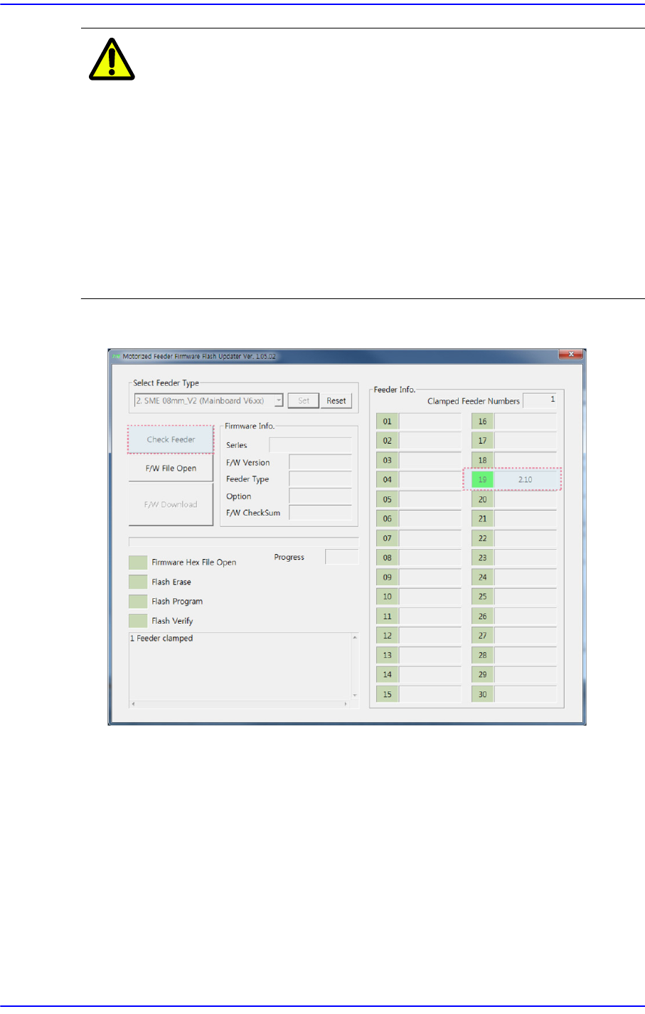 3. 单击<Check Feeder>按钮查看所安装的供料器的固件版本。