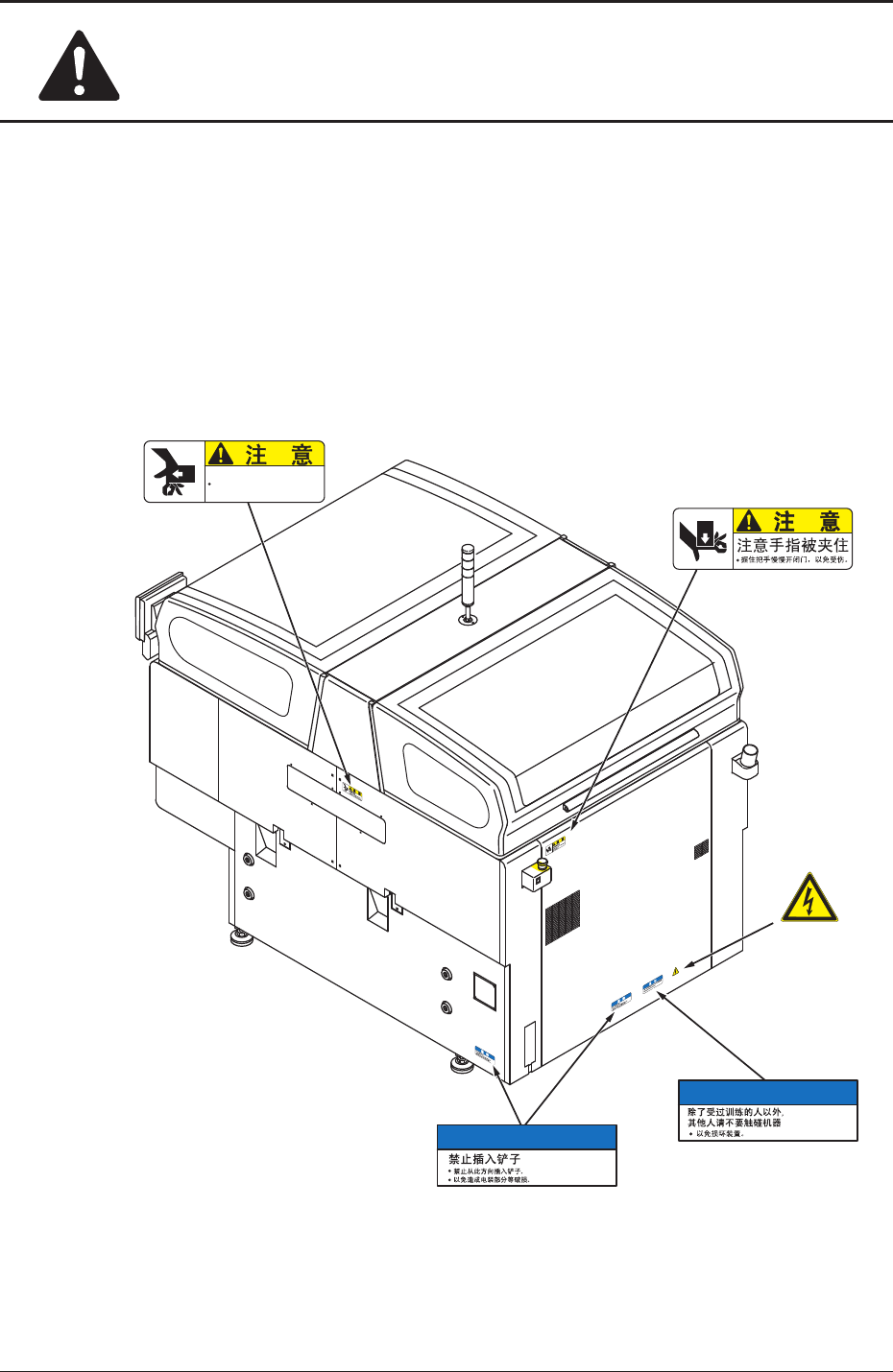 警告标签因破损无法看清楚内容时,请联系本公司服务部门更换新的标签。