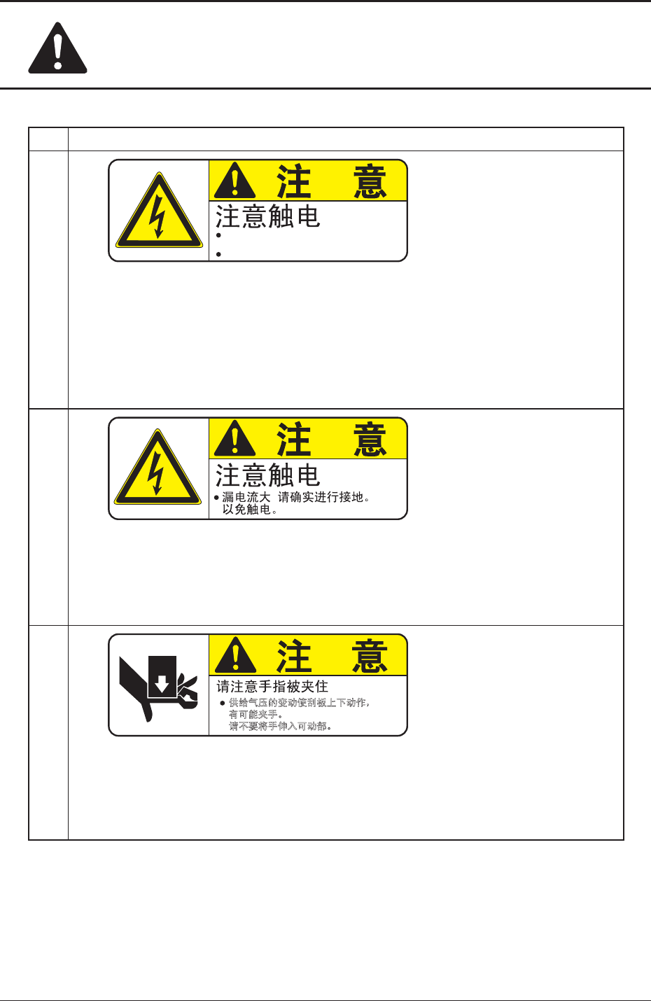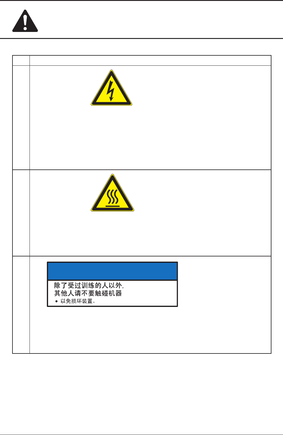除了装置运行操作人员或受过维修训练的人以外,其他人请不要触碰机器。