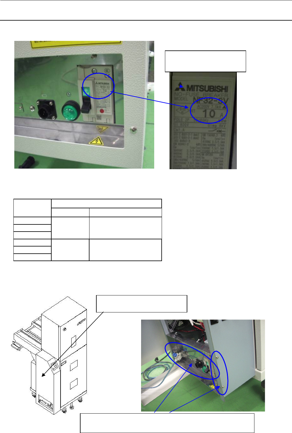 维修调整要领书 1-4 取下 M3 螺丝( 2 处),并取下 CIRCUIT P ROTECTOR 。 组装上符合电压规格的 CIRCUIT PRO TECTOR 。 请按照安装的相反顺序将取下的部件组装好。 电压规 格 : 380, 400, 415V 电压规格 : 200, 220, 240V UNION Y ( φ 6) Reducer ( φ 6- φ4 ) SEMS cap bolt M3 × 8 (S) 4 个 Breake…