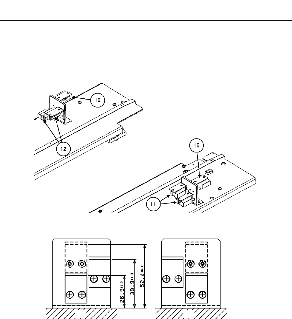 块等时,受光侧的红色 LED、绿色 LED 均亮灯,放置 11mm(上侧传感器为 24mm)的调整块等时
