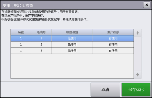 按照机器设置中设定的使用贴片头的设定优化生产程序,更新生产程序(覆