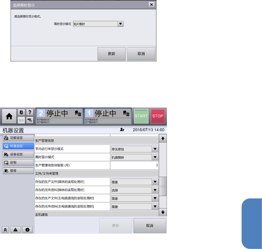 [平均运行率]的计算公式分别有 3 种模式。这些可以在[机器设置]中设定。