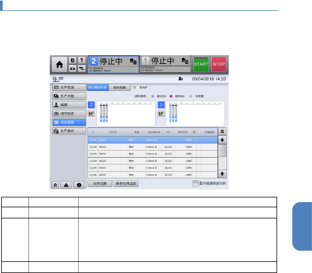 有关吸嘴的错误/警告显示的详情,请参阅「4-3-3. 生产状况的显示」的「错误、警告的显示」。