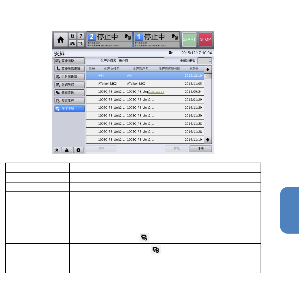 显示生产程序列表的[注册]标记 。