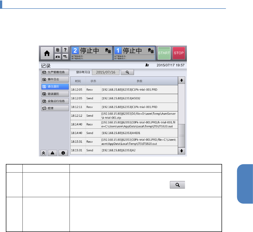 通信履历显示使用主机通信功能时的数据通信履历。IFS-NX 的联机连接功能(选项)、外部输出功能,