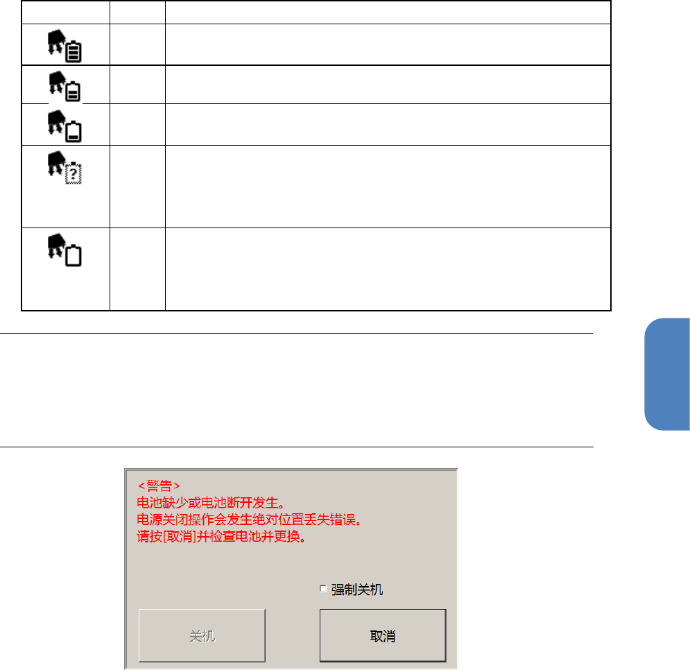 电池的状态以图标及字符显示。