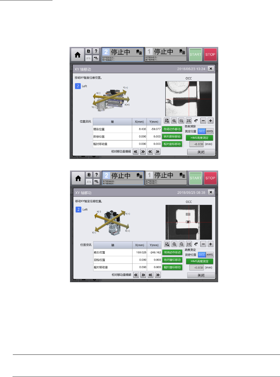 将吸嘴前端移动到前后(Y 轴),左右(X 轴)的任意位置,通过摄像机确认基板的状态。