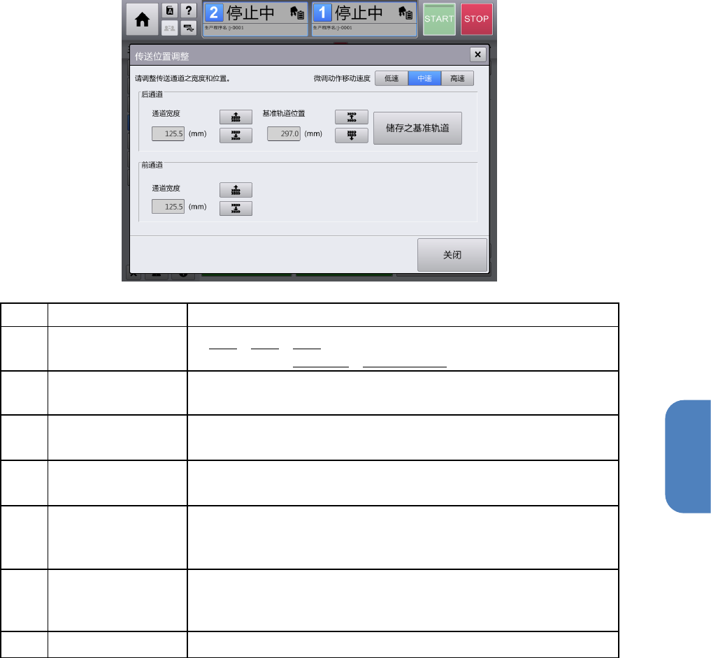 速度,用于调整通道宽度及基准轨道位置。