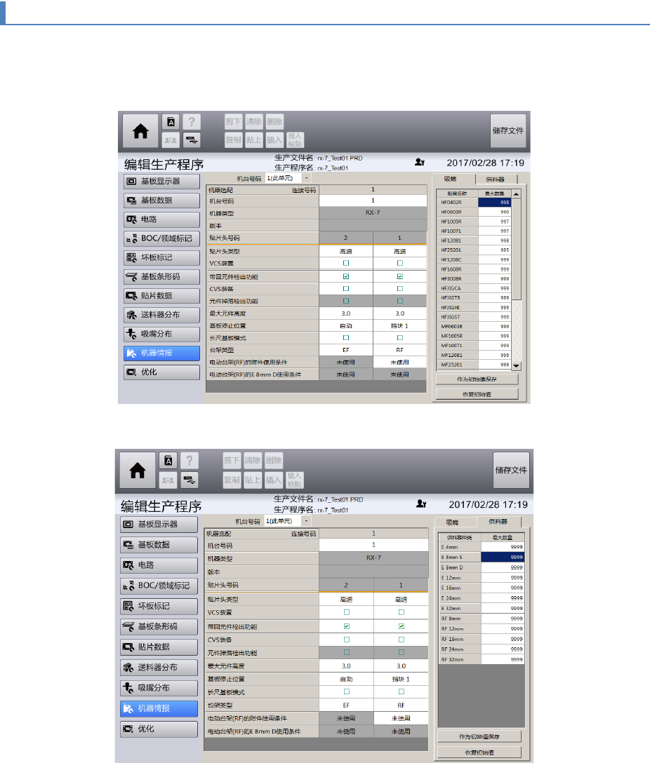 机台号码 显示进行吸嘴配置的连接编号和机台号码。通常不要编辑。