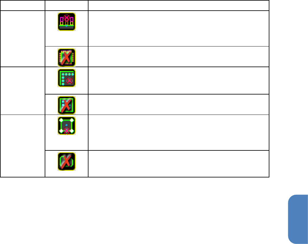 第 4 章 操作篇 4- 13. 元件生成向导 307 4 删除按钮 对象 按钮 说明 脚 显示用于设定脚 的缺损或删除的删除标记。 白色标记:删除 脚 蓝色标记:删除 [ 脚号码 ] 中选择的脚参数的 所有信息 全部删除脚参数 的所有信息。 球 触摸浅蓝色的球 位置删除球。 蓝色 标记:删除 [ 球号码 ] 中选 择的球参数的所有信息 全部删除球参数 的所有信息。 本体 (异形) 显示用于删除 本体 的边或顶点 的删除标记。 白色…