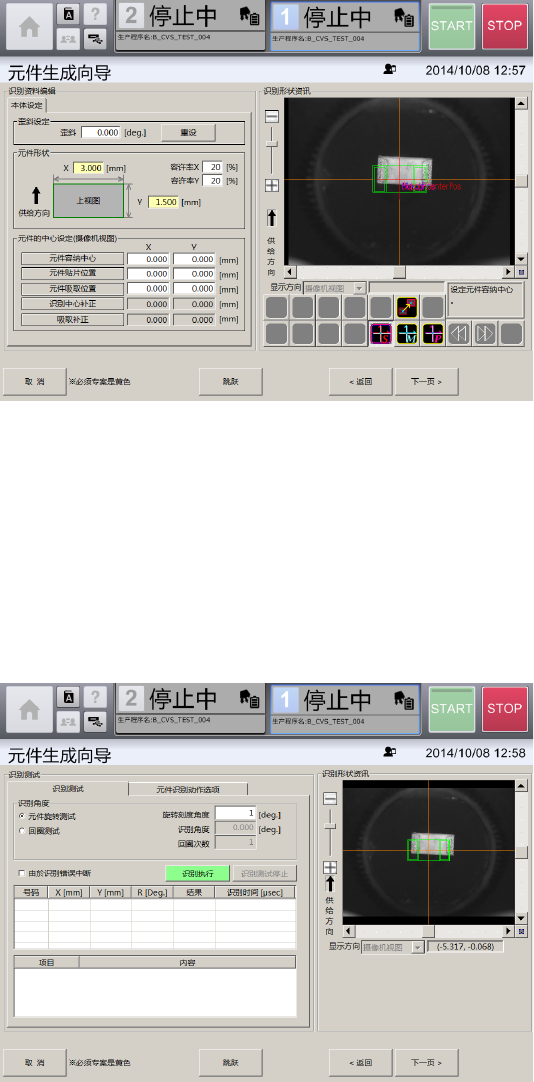 [识别测试]选项卡,可在[吸取、废弃]画面中吸取有元件时,使用[识别资料编辑]画面中制作的元件