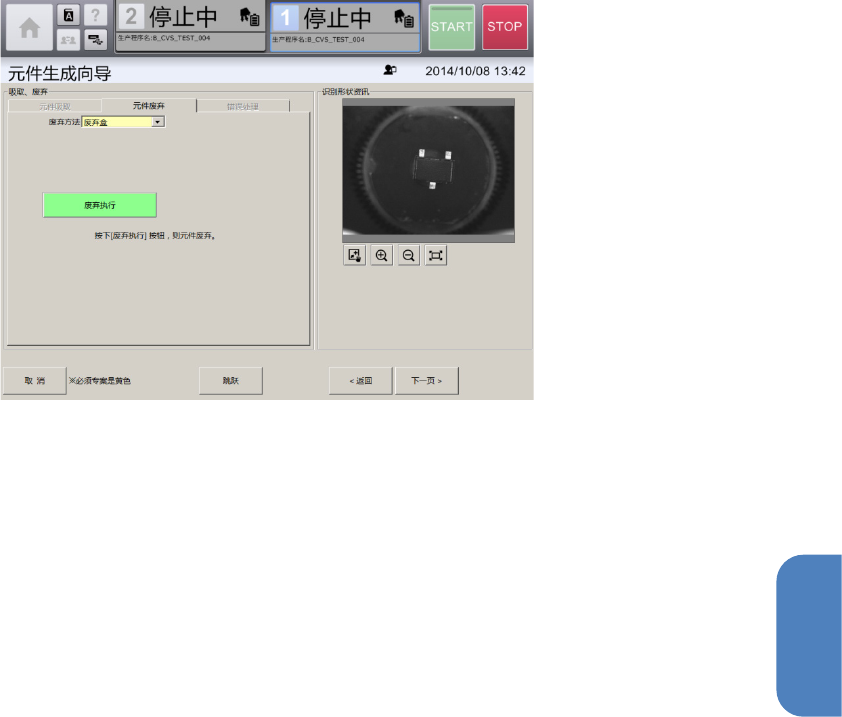 贴片头吸取元件过程中,会显示[吸取、废弃]画面。