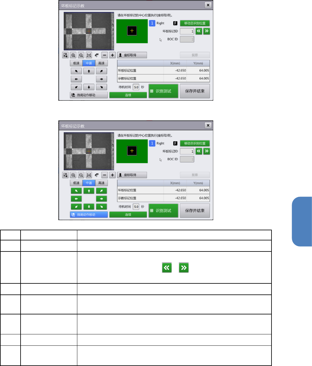 摄像机图像中显示坏板标记的示教点时进行十字标记操作,其他情况下进行微调移动。