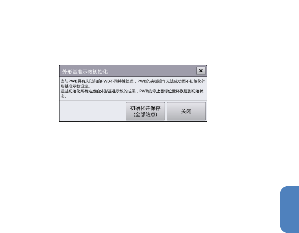 前次示教的基板为缺口基板时,要按[恢复初始状态] 按钮显示 [外形基准示教初始化] 对话框,按[初